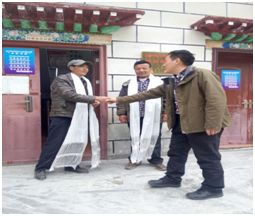 為全面貫徹落實(shí)習(xí)近平總書(shū)記“精準(zhǔn)扶貧”的戰(zhàn)略思想,積極響應(yīng)黨和國(guó)家提出的“旅游+扶貧”的行動(dòng)指導(dǎo)意見(jiàn),全力打好西藏扶貧開(kāi)發(fā)攻堅(jiān)戰(zhàn),促使日喀則市旅游由“景點(diǎn)旅游”向“全域旅游”發(fā)展。2017年4月27日,我集團(tuán)黨委書(shū)記李川帶領(lǐng)黨員干部一行來(lái)到下亞?wèn)|鄉(xiāng)切瑪村委會(huì)進(jìn)行慰問(wèn),切瑪村村委會(huì)書(shū)記、村委會(huì)主任等領(lǐng)導(dǎo)干部予以接待。在慰問(wèn)過(guò)程中,切瑪村村委領(lǐng)導(dǎo)干部對(duì)我集團(tuán)開(kāi)展的旅游工作進(jìn)行親切交流并對(duì)做出的成績(jī)予以肯定。黨委書(shū)記李川代表我集團(tuán)向切瑪村村委領(lǐng)導(dǎo)干部對(duì)近期開(kāi)展的工作做了匯報(bào),向村委領(lǐng)導(dǎo)干部對(duì)我集團(tuán)開(kāi)展的旅游工作做出的大力支持表示由衷的感謝。最后,集團(tuán)黨委書(shū)記李川親自向村委會(huì)書(shū)記、村委會(huì)主任等領(lǐng)導(dǎo)干部敬獻(xiàn)哈達(dá),并給村委捐贈(zèng)了生活物資,以幫助當(dāng)?shù)氐娜嗣袢罕姼纳粕钏?,再次深切感謝下亞?wèn)|鄉(xiāng)切瑪村委會(huì)及人民群眾對(duì)集團(tuán)旅游事業(yè)發(fā)展與集團(tuán)黨組織建設(shè)的大力支持。