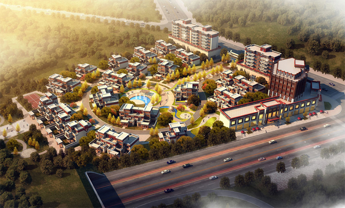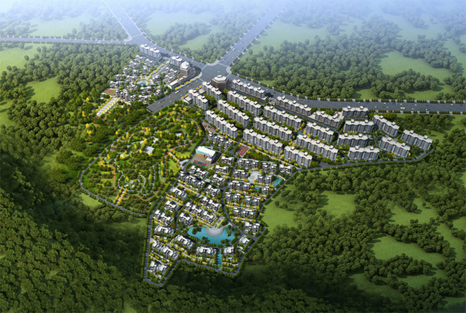 地上面積195885.410㎡,包含104棟別墅,41棟多層純住宅,13棟商底塔樓住宅,2棟酒店,1棟幼兒園及1棟菜市場;底下建筑面積43662㎡,為一層地下室。