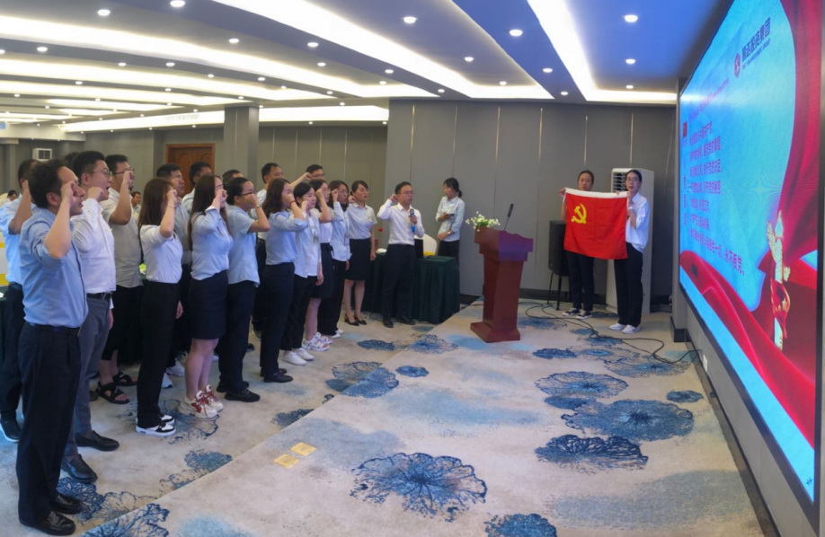 首先,集團黨委副書記余帥發(fā)表講話,他指出,此次會議由集團黨委領(lǐng)導(dǎo)全體員工集中學(xué)習(xí),規(guī)模宏大,體現(xiàn)了易達(dá)黨委對做好執(zhí)行貫徹中央和西藏工商聯(lián)關(guān)于黨史學(xué)習(xí)任務(wù)部署安排的信心和決心。在他的感召下,全體黨員面向黨旗宣誓,重溫入黨誓詞,感受初心和使命?!拔抑驹讣尤胫袊伯a(chǎn)黨,擁護黨的綱領(lǐng)···”,鏗鏘有力的宣誓聲久久回蕩在會場,豪邁雄壯的聲音彰顯了易達(dá)黨員慷慨激昂的精神風(fēng)貌,體現(xiàn)了新一代黨員干部的干勁和生機,更加堅定了集團黨組織發(fā)展壯大的信心和決心。