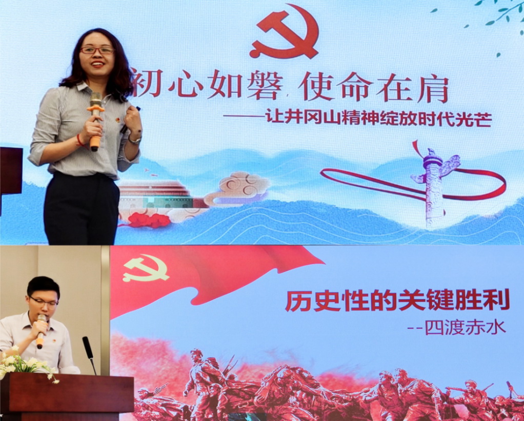 隨后,集團黨委開展了黨員講黨課。易境黨支部代表為全體分享《井岡山精神》,結(jié)合井岡山精神的產(chǎn)生背景和科學(xué)內(nèi)涵,分析了井岡山精神的核心和精髓,并結(jié)合工作實際賦予井岡山精神現(xiàn)實意義,號召全體學(xué)習(xí)并發(fā)揚井岡山精神,讓它在新時代發(fā)射出新的時代光芒。易達(dá)黨支部代表分享的《四渡赤水》,結(jié)合沙盤演練,為大家呈現(xiàn)了一場精彩生動的學(xué)習(xí)盛宴。在面對敵軍圍剿、敵眾我寡的絕境之地,紅軍指揮員初心如磐,突出重圍,扭轉(zhuǎn)時局,高超的作戰(zhàn)方針和堅定必勝的信念讓在場的每位員工深深折服,全場起立歡呼,為中國共產(chǎn)黨頑強拼搏、百折不撓的大無畏革命精神點贊,熱烈的掌聲將學(xué)習(xí)會議推向高潮。
